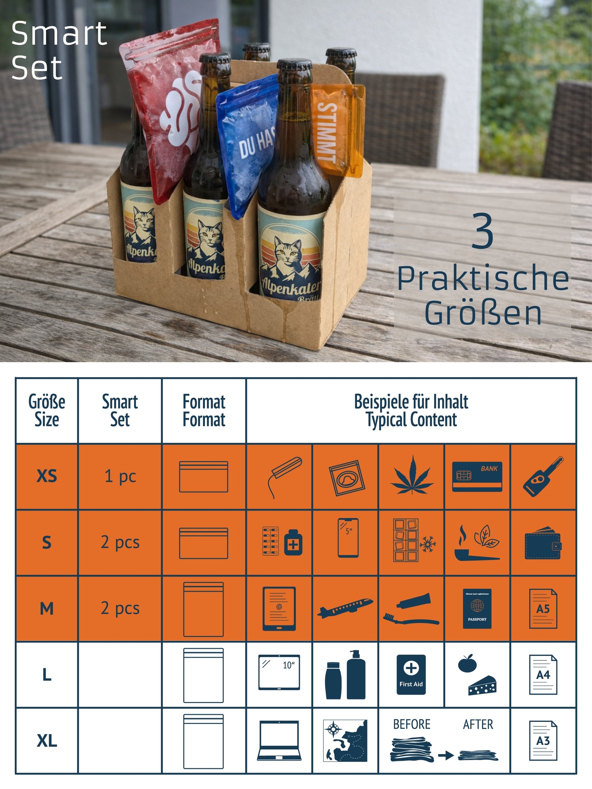 DISKRET: Undurchsichtige Taschen für zusätzliche Privatsphäre. Für Dokumente, Hygieneartikel oder Genussmittel. Gerüche bleiben im Beutel.
