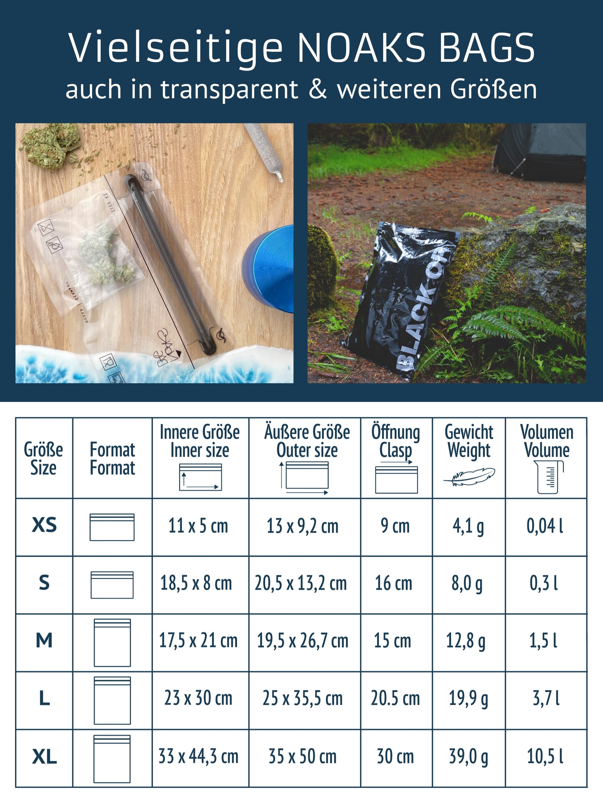 Noaks Bags halten den Inhalt frisch, das Aroma innen und schützen vor äußeren Einflüssen.